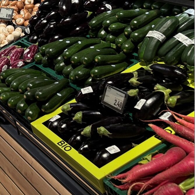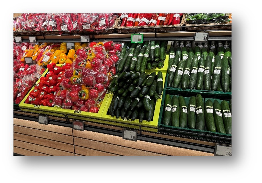 grüne Bio-Box Kistenumrandung zur einfachen und gut sichtbaren „BIO“-Kennzeichnung von Waren