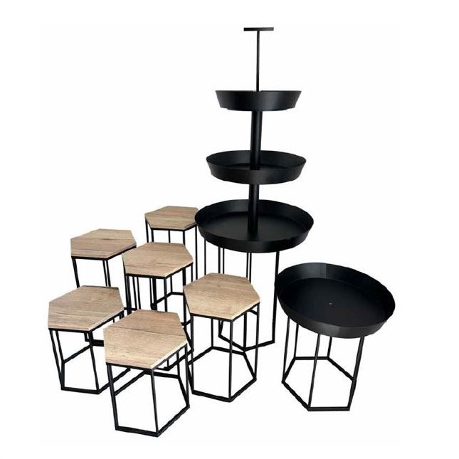• Vielseitig einsetzbar: Kombination mit Tischblättern, Etageren oder Metallschalen