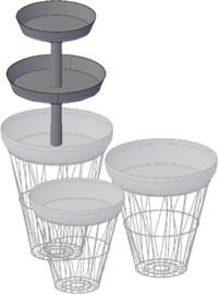 Die Etagere wird auf die große Metallschalen des RambaZamba Trio Korbes montiert (separat zu bestellen) und anschl. auf den Korb des Sets gestellt. Sie erreicht dadurch eine weitere, stattliche Höhengewinnung und edle Präsenz.