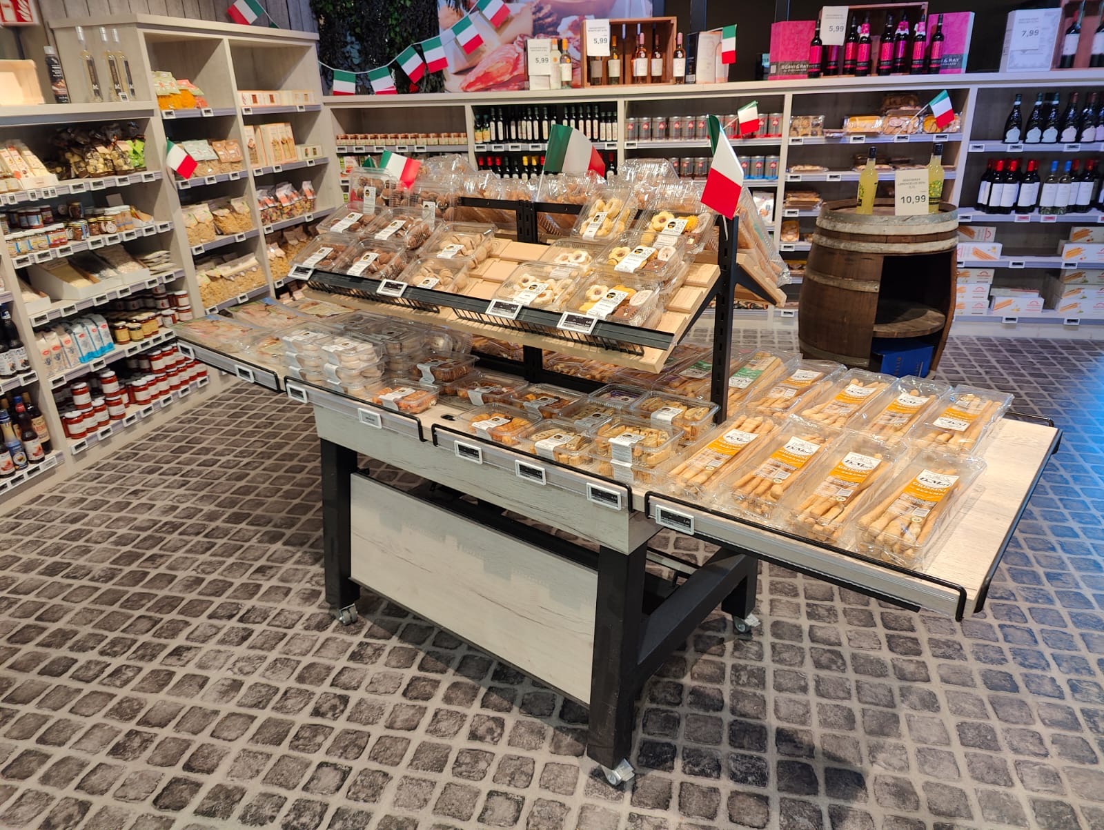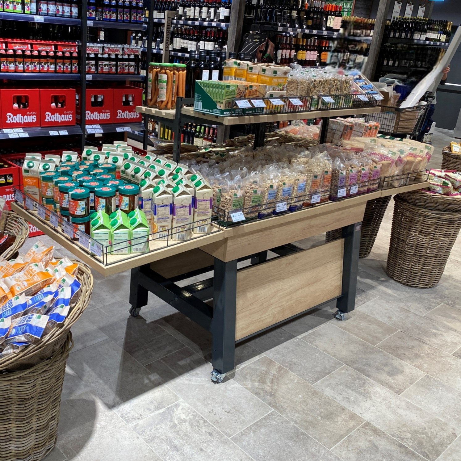 Umlaufende Drahtbügel ermöglichen eine klare und schnelle Preisauszeichnung, perfekt für wechselnde Sortimente und kurzfristige Aktionen.