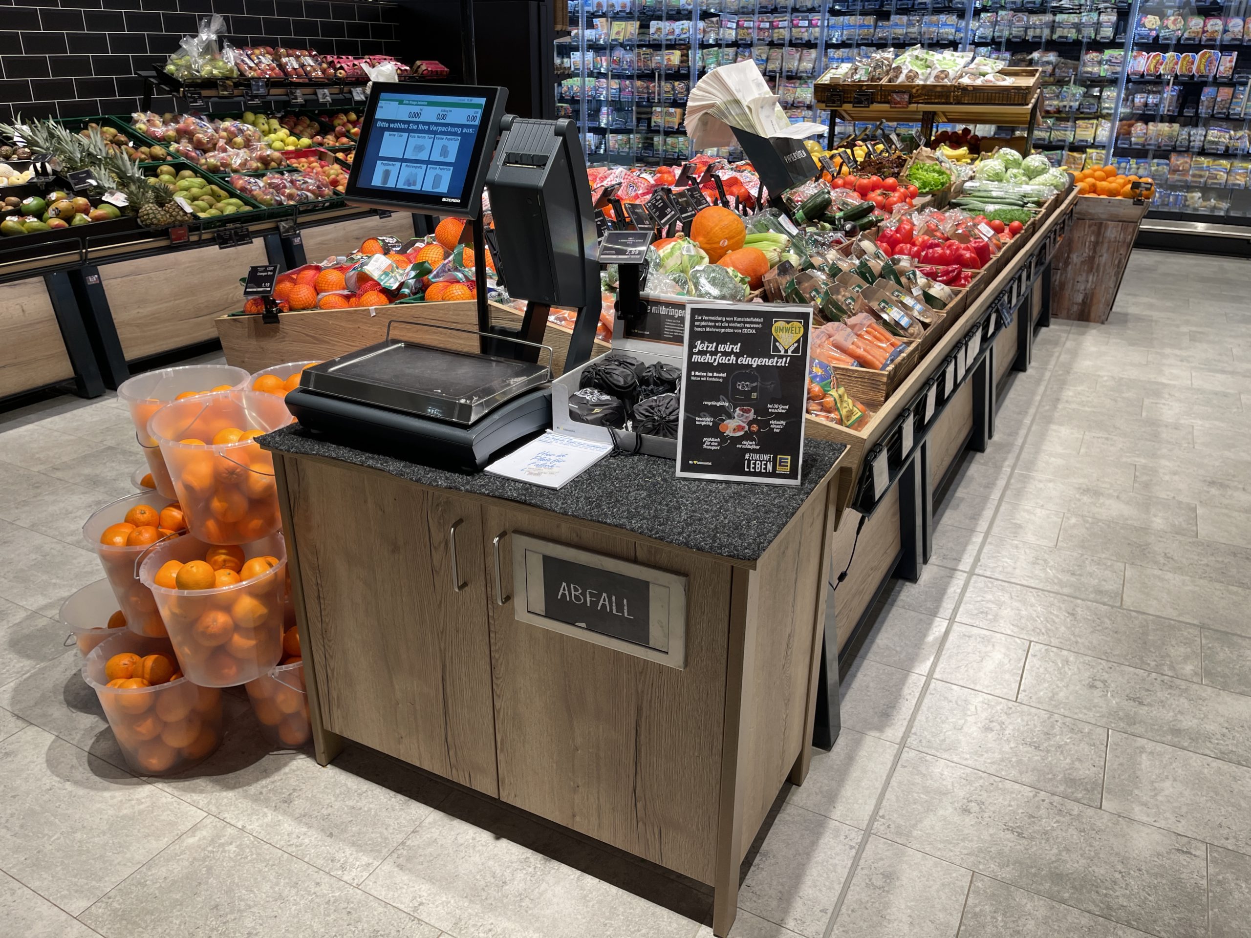 Die Türe rechts ist bestehend mit einer Müll-Einwurfklappe aus Edelstahl,